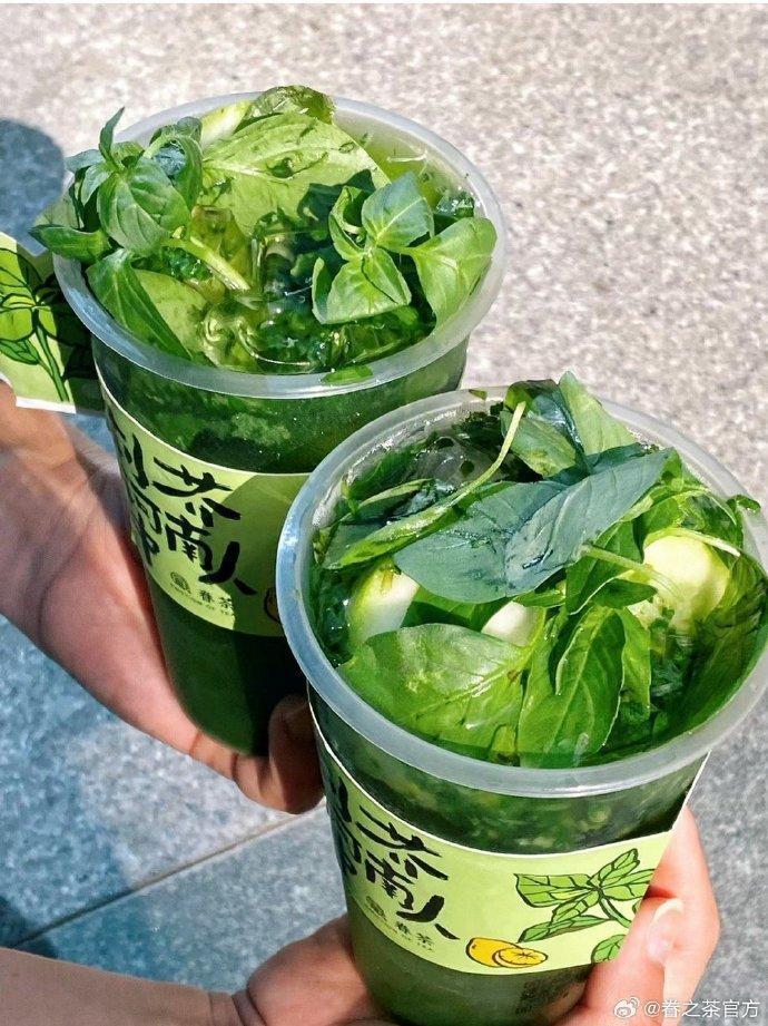 這個河南奶茶品牌的招牌是荊芥,它把這種本土羅勒放進了檸檬茶、生酪和蛋糕卷。荊芥的氣味辛香清冽,在網上的評論兩極分化:有人說它結合了薄荷、香茅和姜的香氣,是河南人的靈魂,夏天唯一的指定味道,也有人覺得又辣又衝,難以下嚥。