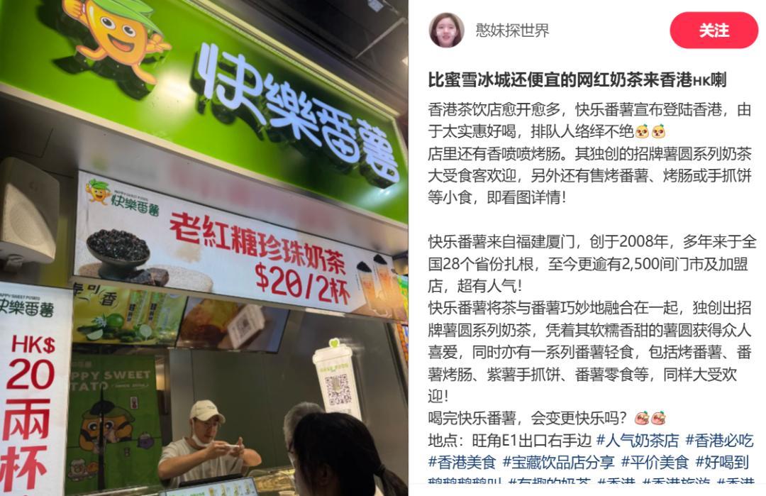 不過,社區超市倒閉之後,周邊的門店也陸續撤離,她已經十幾年沒有喝過快樂番薯,而轉向了更時髦的牌子。“這次開來香港我才知道,它現在主做出海,還過得挺滋潤。”