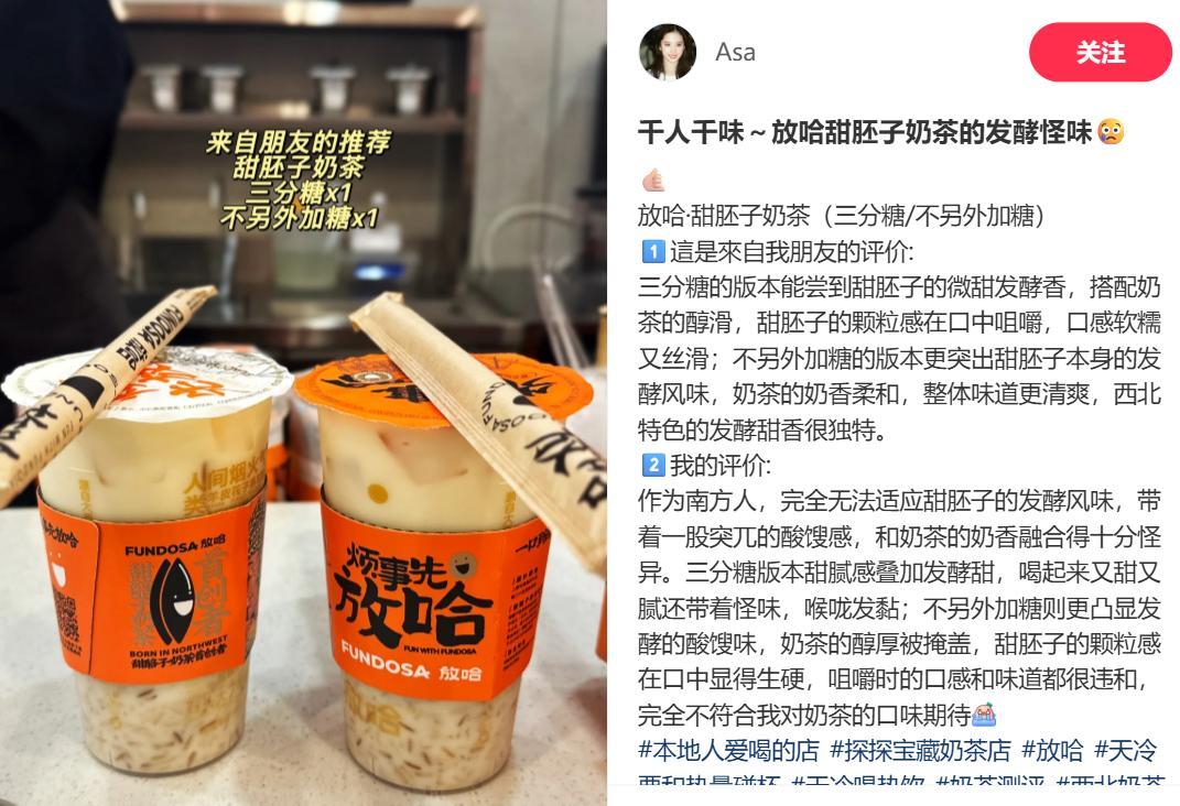 剋制特色的另一面是極致強化特色。如今提起西北奶茶,人們一定會提起放哈:這家奶茶將當地的特色甜胚子做成了奶茶。甜胚子由燕麥、青稞等穀物發酵而成,當地人通常兌水食用:“很甜膩,外地人很可能喫不習慣”。
