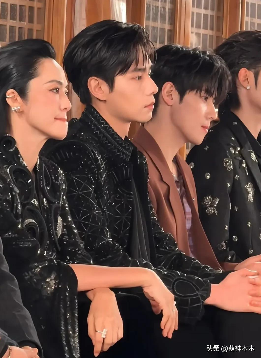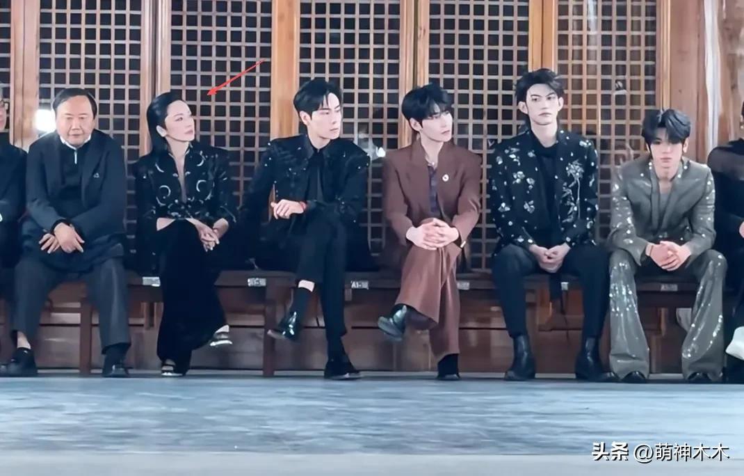 與其他幾位男星放空的表情形成鮮明對比,其他人還是能看到有關注現場,姚晨則完全是“擺爛”狀態。當然,也可能是秀實在無聊,也無法融入都是年輕明星的秀場,才顯得呆滯。