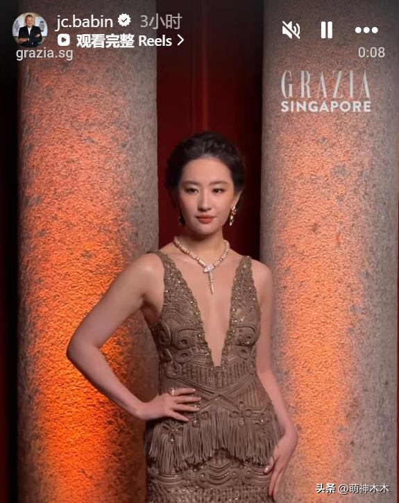 和一衆外國明星站在一起,劉亦菲也很有氣場,皮膚白皙,非常搶鏡,並沒有受到站位被擠的影響。