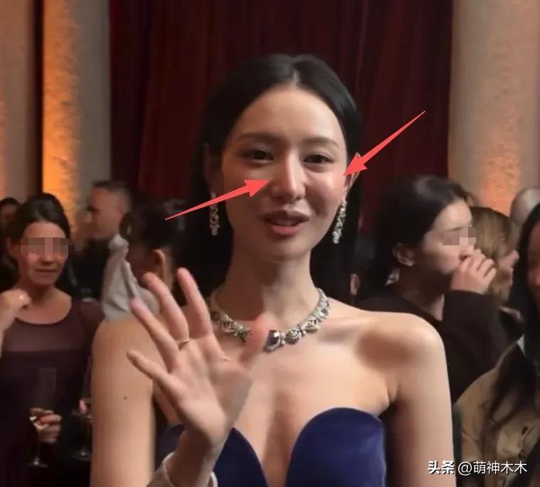 但在外媒的鏡頭和打光下,國民女神秒變油膩,臉又僵又腫,整個T區和蘋果肌都泛着油光。笑起來法令紋很深,一看就是因爲肌肉僵硬而被擠出來的。