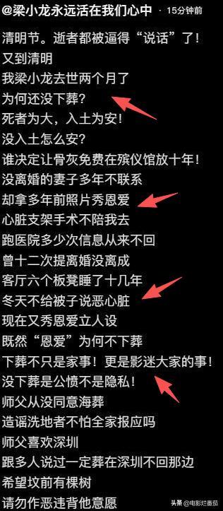 沒想到,梁小龍生前最親近的兩個人,一個是遺孀宋驤,一個是徒弟“平頭”,居然就這麼不體面的“開撕”了,就連梁小龍先生的骨灰,也能“擱置”一旁。