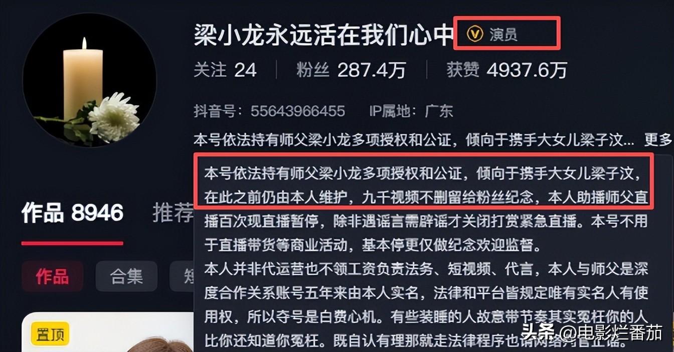 不過在粉絲的要求下,前面的視頻不會刪,也認可賬號是梁小龍家人的,並且願意與梁小龍先生的合法繼承人做善意溝通。