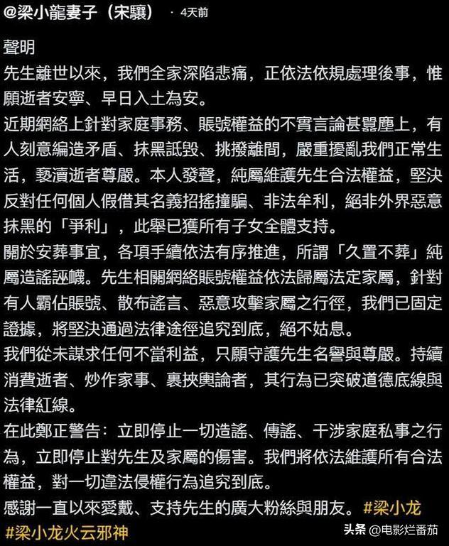 矛頭疑似直指梁小龍先生的遺孀宋驤。