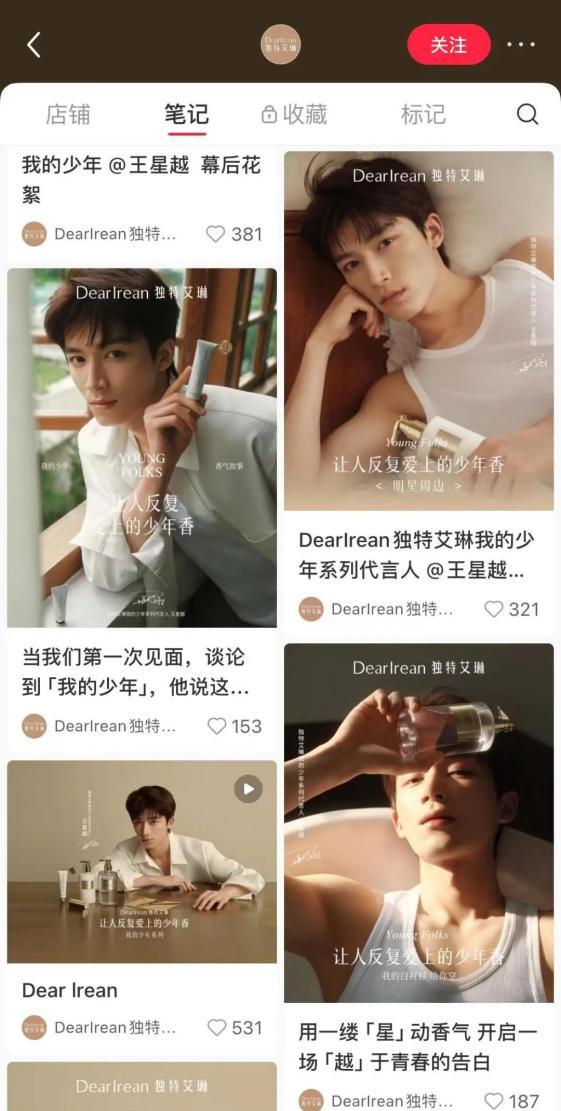 其中,“浮靡之水”與“我的少年”兩款香型最爲出圈。尤其是“我的少年”,憑藉極具畫面感的香調敘事,聯動系列代言人王星越的形象,在宣傳片中以午後陽光、木地板水漬、清淺呼吸等細節,調動感官、喚醒記憶,不僅讓該香型深入人心,更成爲獨特艾琳品牌破圈的標誌性範本。