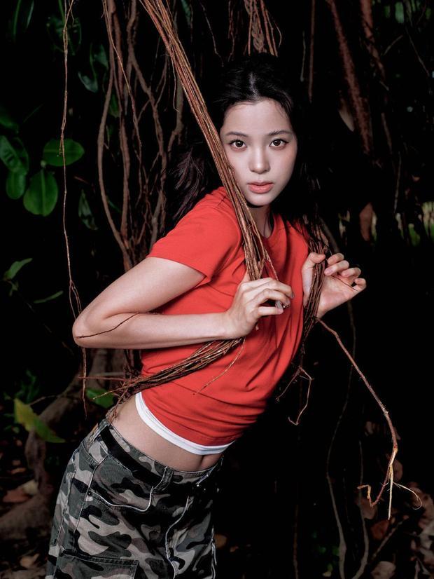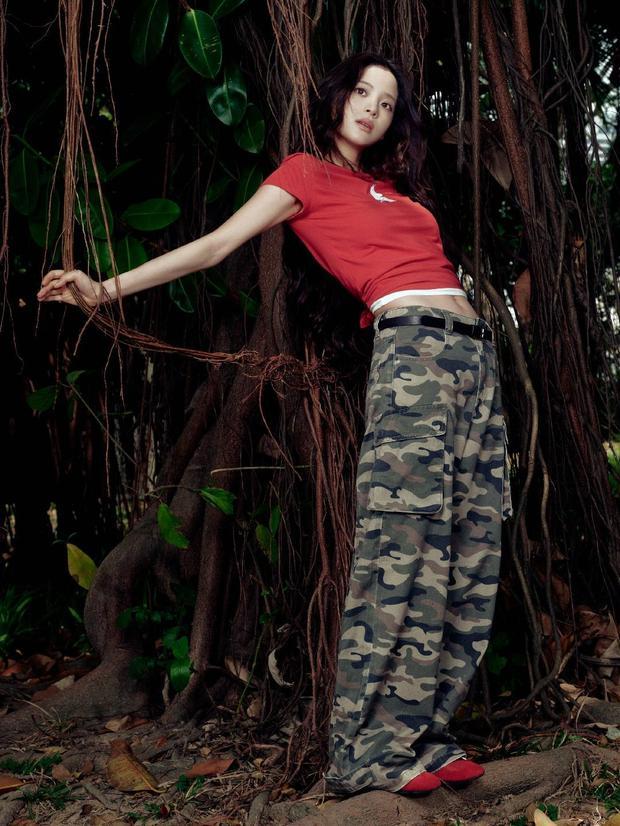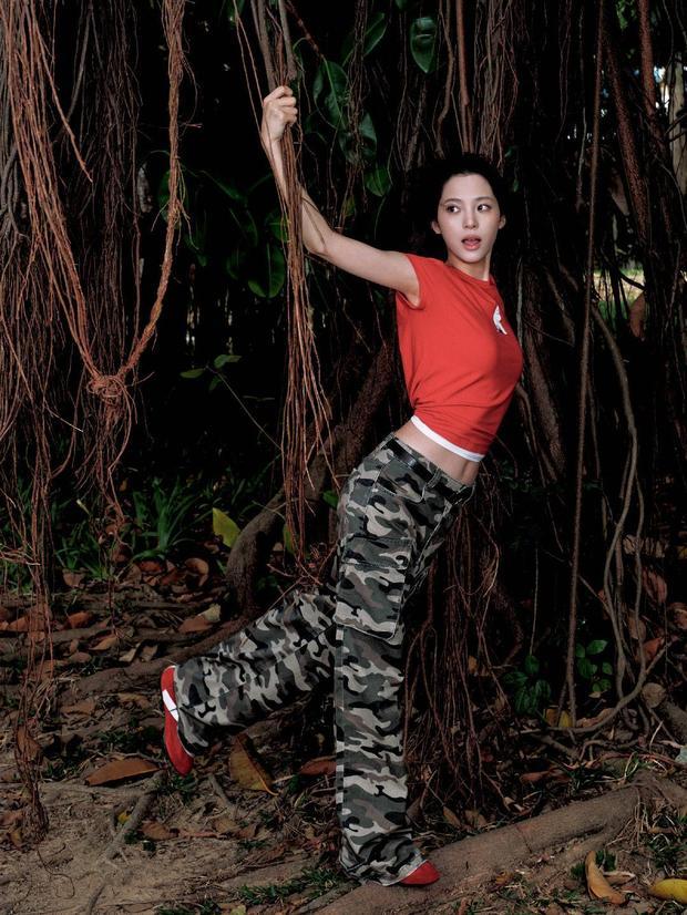歐陽娜娜站在海邊礁石上擺pose拍照,大方秀好身材。