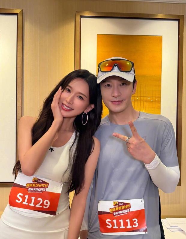 林志玲與黃曉明同框合影,綻放俏皮笑容,可愛迷人。