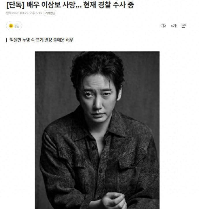 搜狐娛樂訊 27日,據韓媒,演員李相寶被發現身亡,享年45歲,目前正調查確切的死亡原因。據悉,李尚寶憑藉電視劇《透明人崔長洙》出道,先後出演《媳婦的全盛時代》《隱祕而偉大》《基督山小姐》等多部作品。此前,李尚寶在2022年捲入吸毒嫌疑,後經確認,是服用醫院開具的抗抑鬱藥物過程中引發的誤會。警方因無證據證明其吸毒,作出不予起訴決定,案件最終以無嫌疑結案。