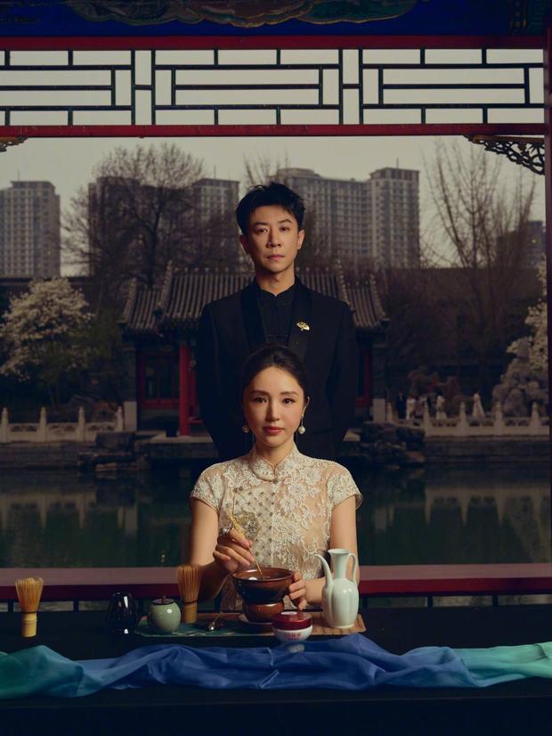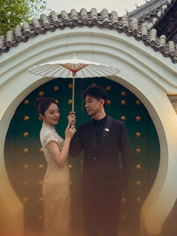 二人在中式庭院走廊裏拍照,氛圍感拉滿。
