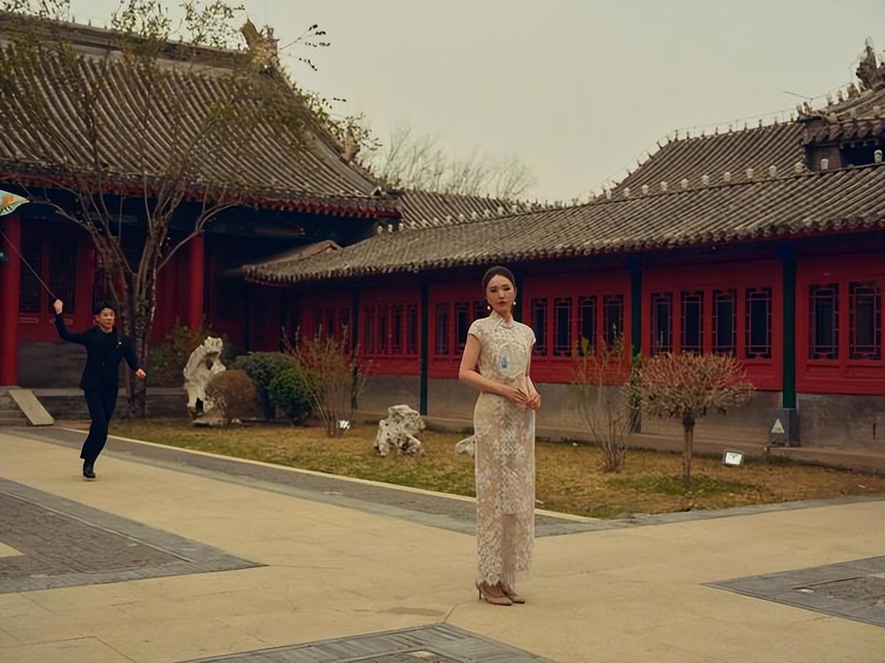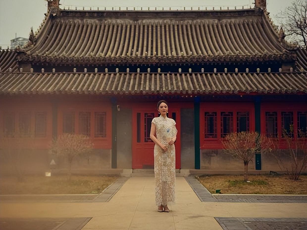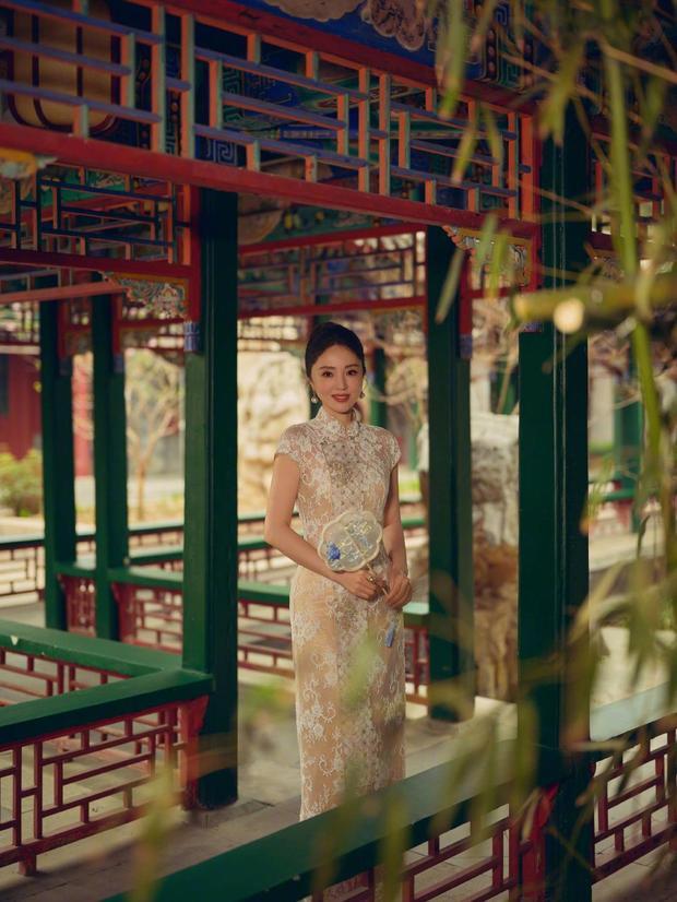 董璇穿蕾絲旗袍秀曼妙身姿。