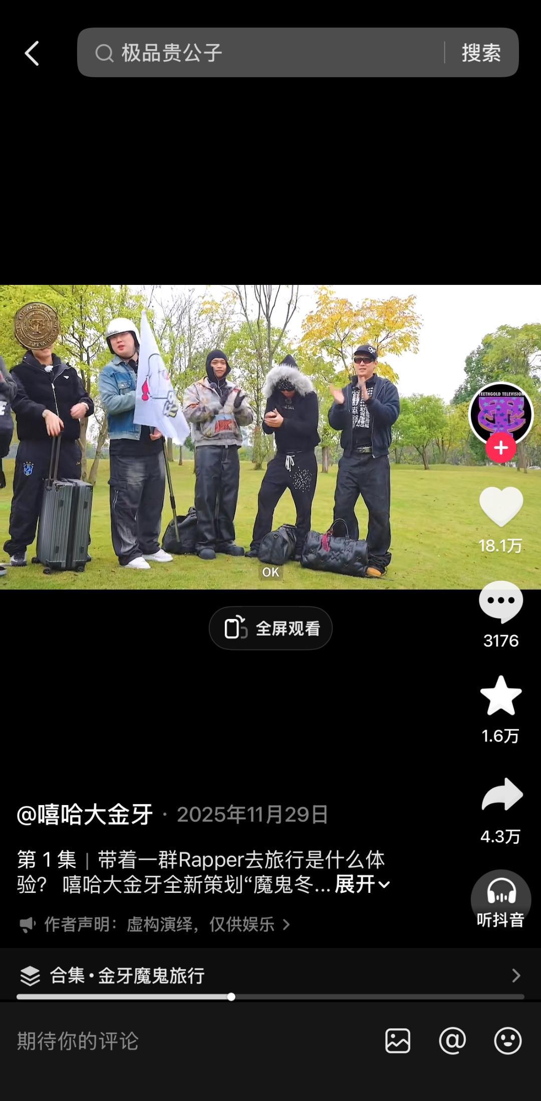 《魔鬼冬遊記》只是起點,@嘻哈大金牙的內容探索仍在繼續。“最重要的還是消除觀衆對rapper的刻板印象,讓大家看到立體真實的rapper;其次希望與更多藝人、博主聯動,把內容做出圈;再就是期望有更多商業機會。”