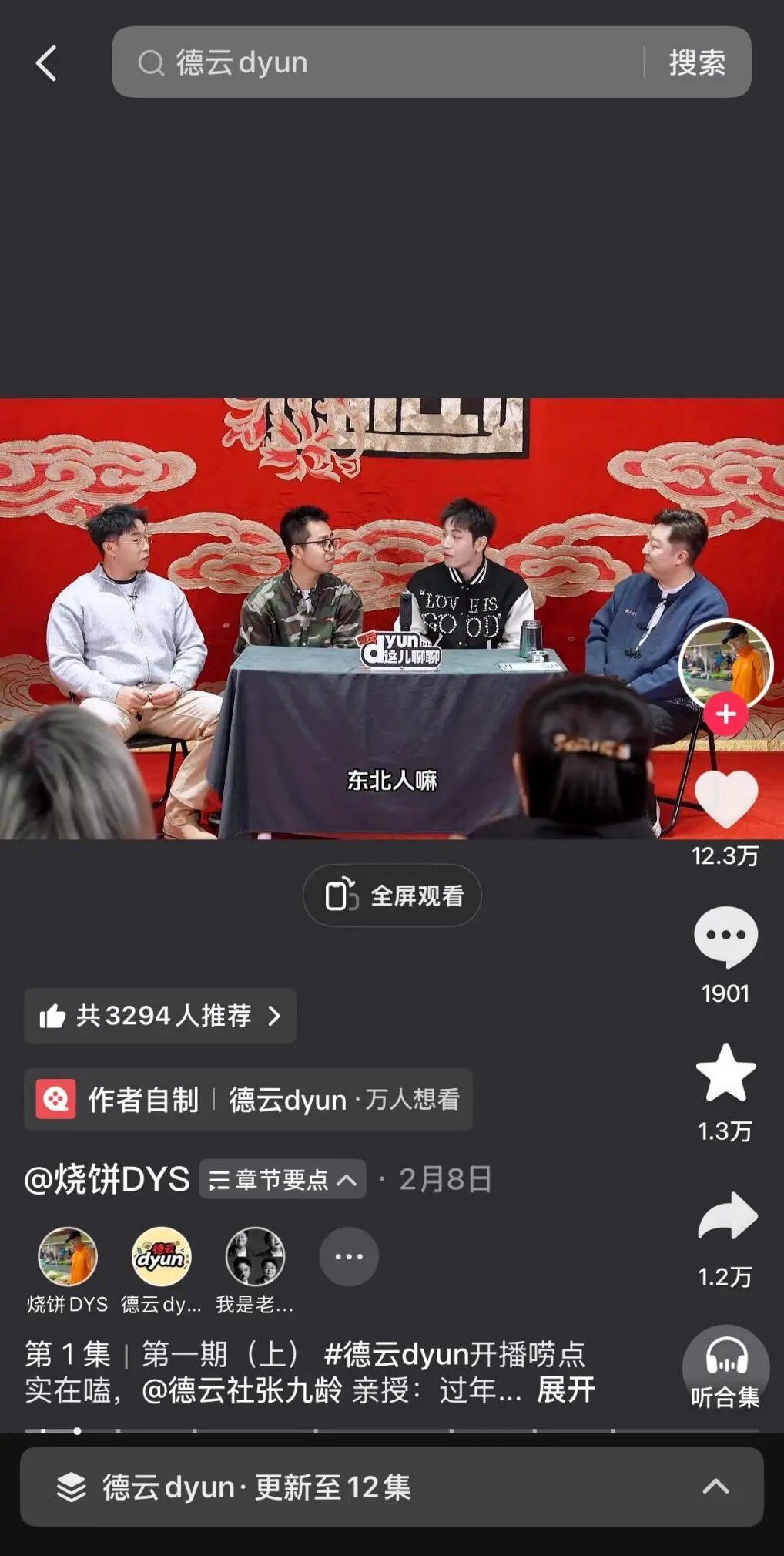 諸多藝人也開始加入抖音創作者陣營、推出體系化節目,《德雲dyun》就是@燒餅DYS、@我是老四曹鶴陽、@德雲社張九齡、@尚筱菊、@張鶴倫等相聲演員合作的一檔談話類節目。
