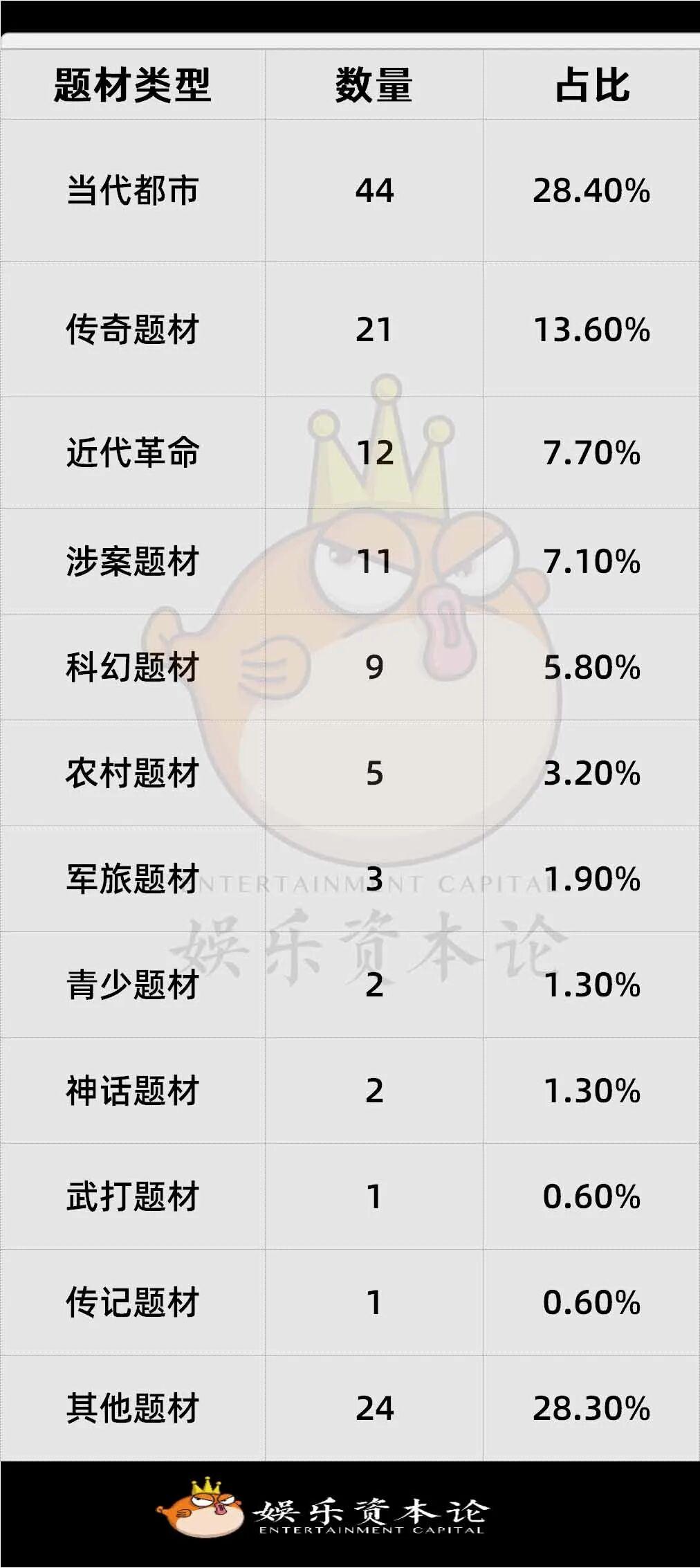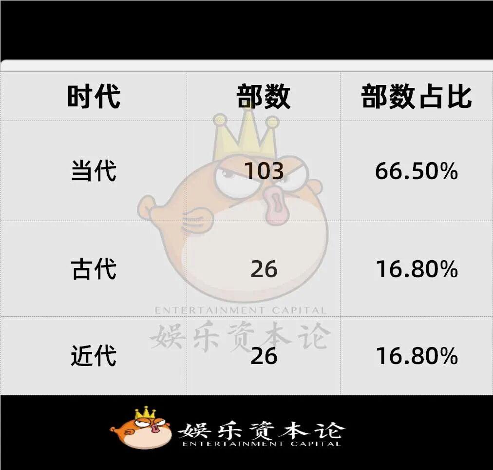 在題材方面,當代題材有93部,佔比62%,現代都市、懸疑、科幻題材成爲主流,現實主義創作持續深化。古代題材28部,佔比18.7%,控量政策持續生效,以古代傳奇爲主。短劇以及季播劇共29部,佔比19.3%,平臺與製作公司加碼中短劇集,降本增效明顯。網絡故事片佔比36.7%,這一板塊異常活躍,成爲中小成本試錯的主要陣地。