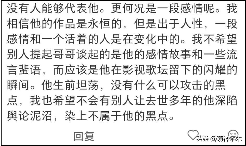 當然了,因爲唐鶴德被曝新歡一事,難免有人替張國榮感到不平,那就回到最初的問題——只看張國榮的選擇,他沒有辜負任何人,家人、愛人身邊人乃至陌生人,都因爲他得到了愛與溫暖,以及金錢。