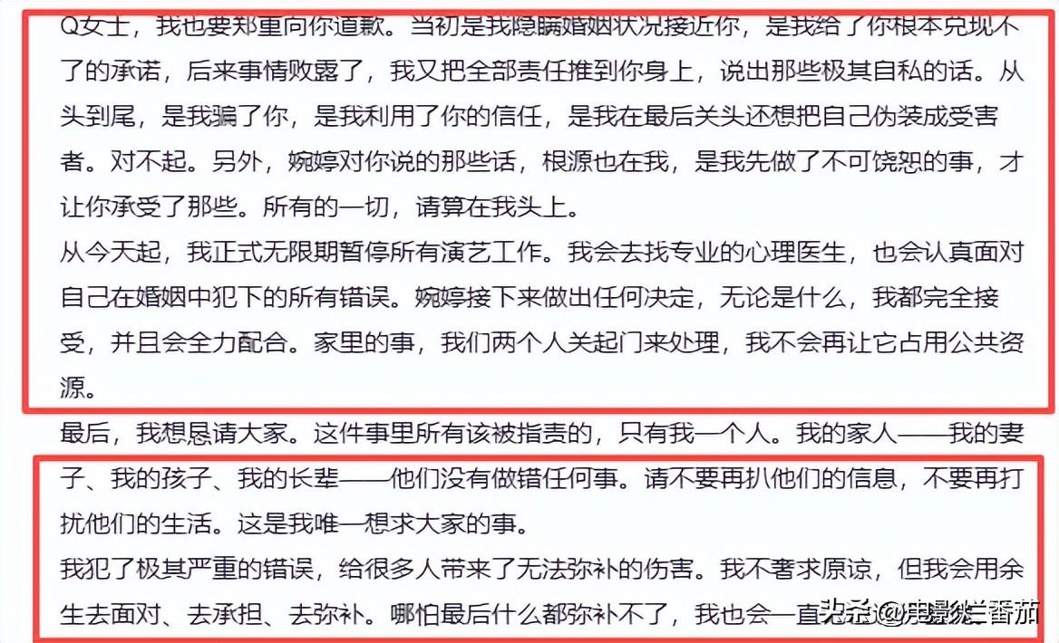 是的,他承認了,還強調了一個既定事實,“是我出軌在先,是我把所有人拖進了這攤爛泥。”