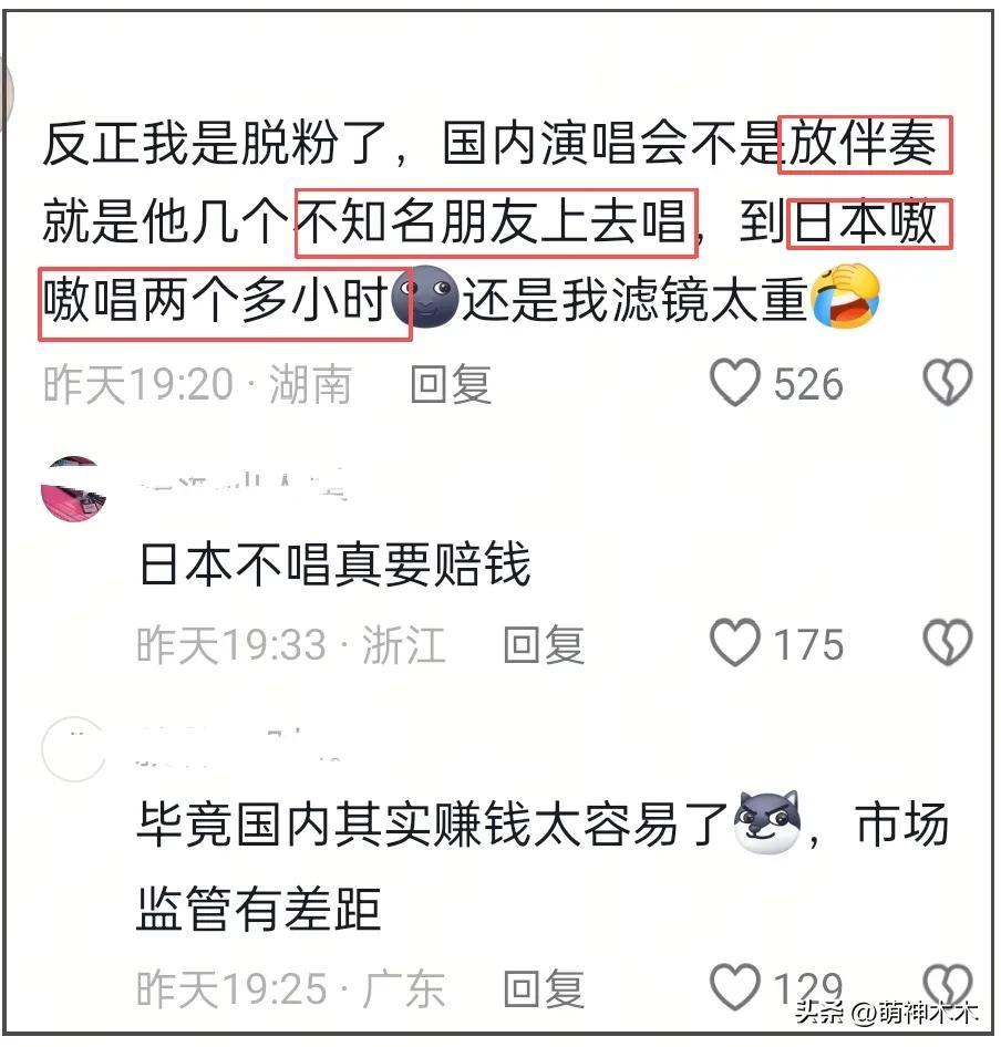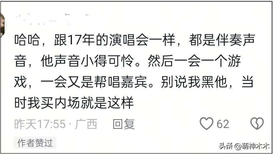 作品確實是一個人的底氣,但是歌手如果不想要唱現場,那不開演唱會就好了,不能既要又要,長此以往,砸得是自己的口碑。最後,想要去看的人就降低預期,可能還會比較好接受。