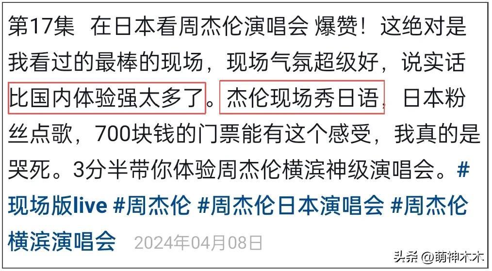對比中日兩地粉絲的演唱會反饋,能明顯看到周杰倫對日本演唱會更上心,粉絲們也直言比國內體驗感強太多,稱周杰倫不僅現場秀日語。還能唱高音。
