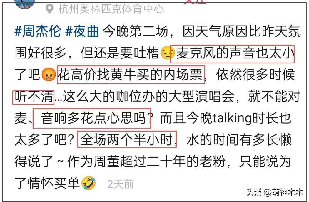 許是吐槽周杰倫話筒聲音演唱小的問題太多了,不少粉絲也從情懷中清醒了過來,表示划水是態度問題。