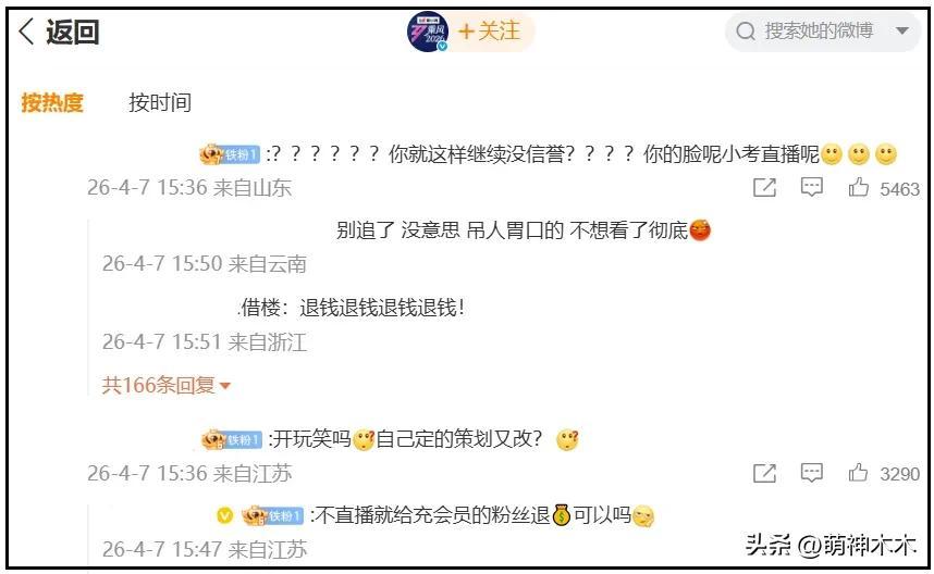 目前已經有網友狂喊退錢了,放話要退掉芒果平臺會員,以此抗議節目組出爾反爾,把直播改成了錄播,連同贊助商評論區都遭殃。