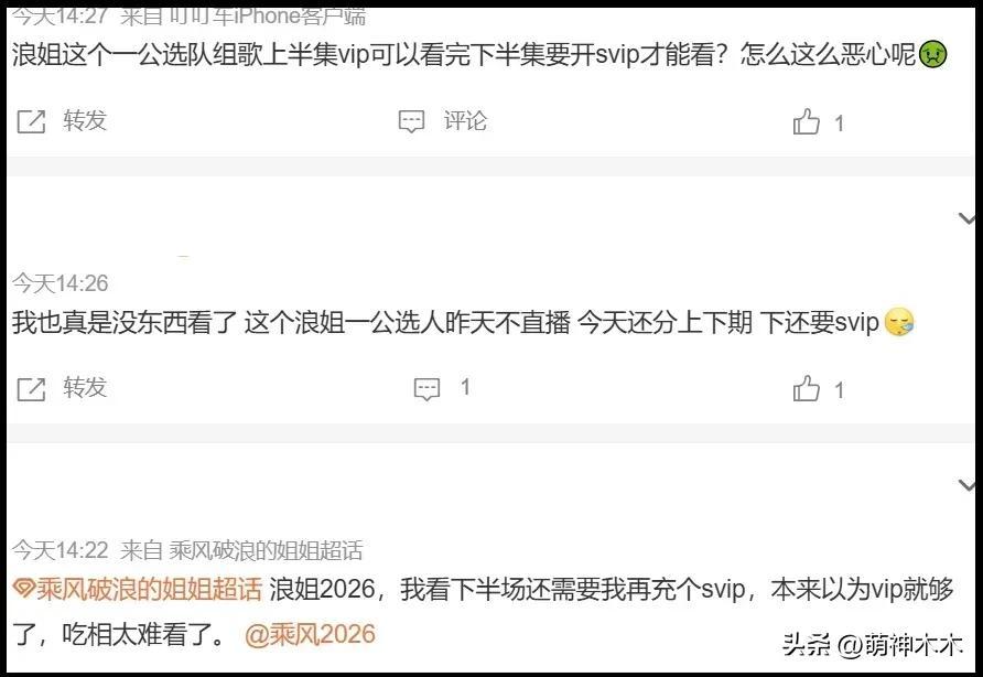 畢竟不少網友都是爲了看《乘風2026》直播才購買了芒果VIP會員,如今直播沒了,只能看錄播,選擇維權也是無奈之舉。