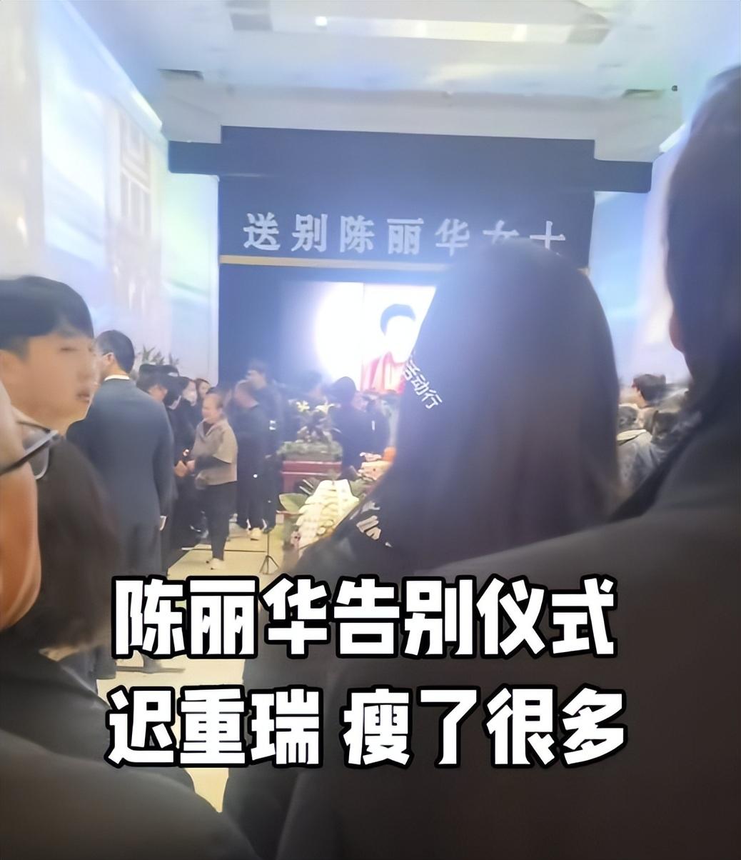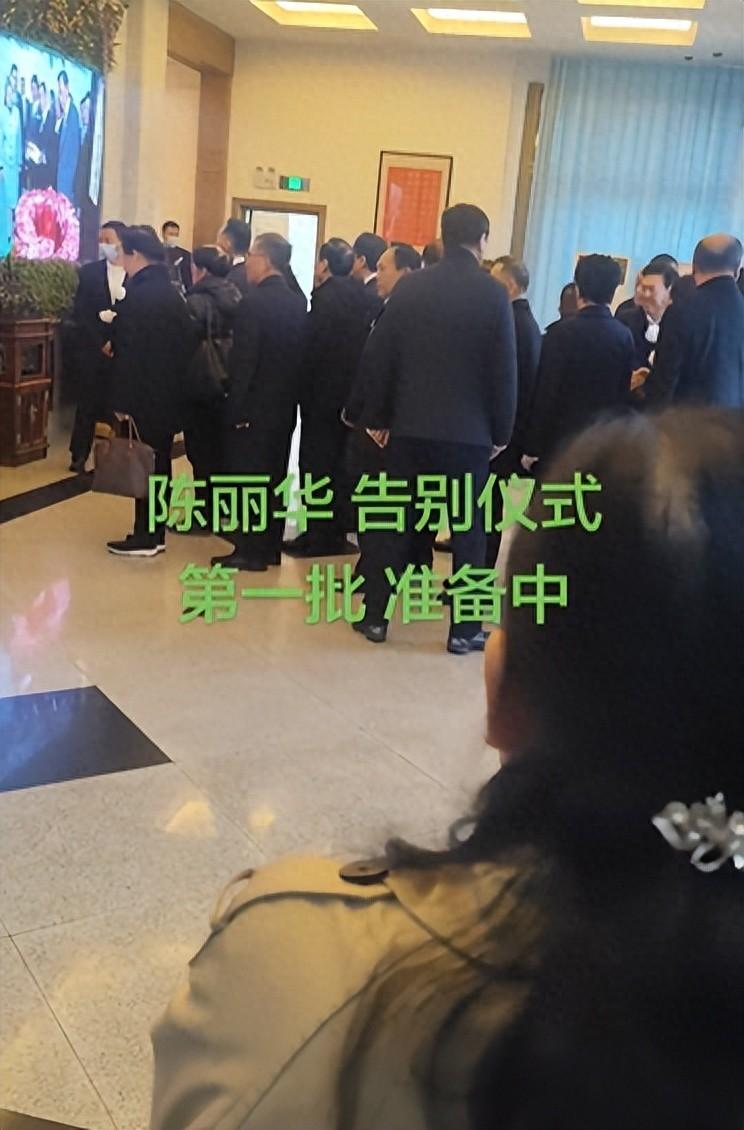 陳麗華追悼會內場莊嚴肅穆,她的遺照顯示在大屏幕上,值得注意的是大屏幕上的遺照並沒有像常規那樣設置成黑白色,照片中的陳麗華還穿着一身紅色衣服。