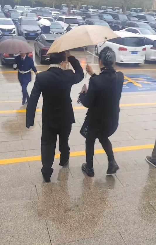 當天,六小齡童戴着口罩,圍着圍巾,他梳着大背頭,一身黑西裝十分立正。