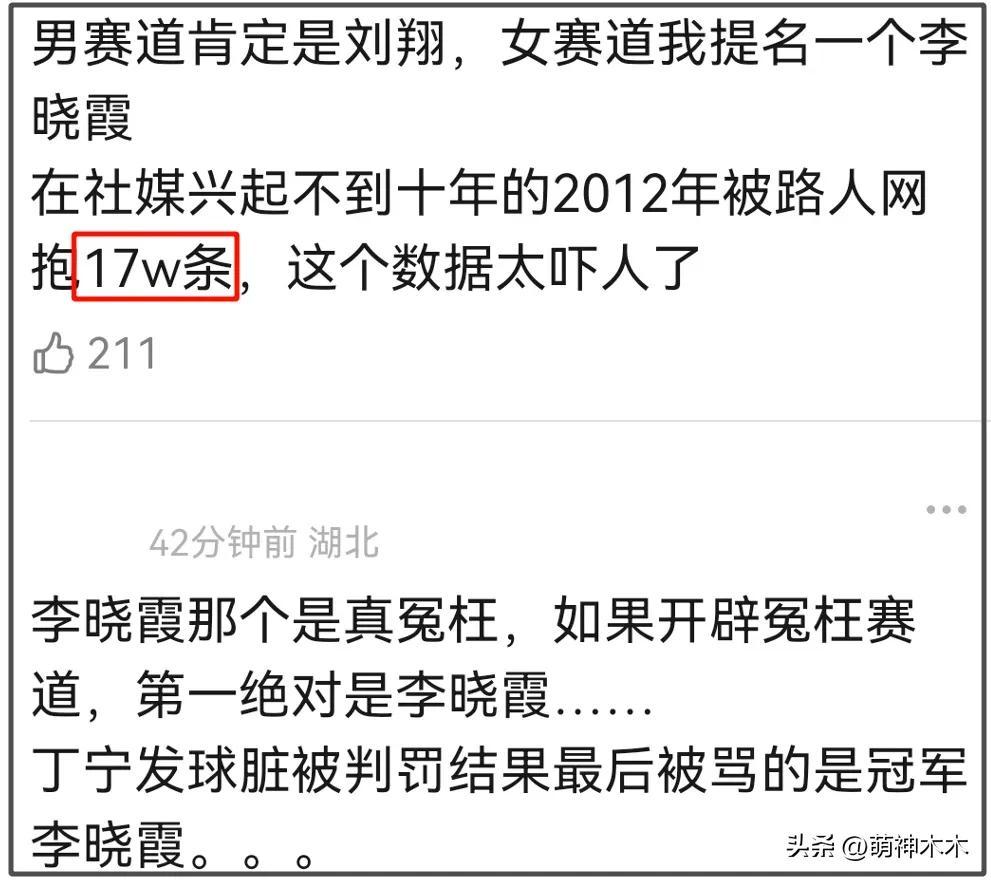 說起2012年的倫敦奧運會,還有一個讓網友印象深刻的運動員,那就是打敗丁寧,拿下倫敦女單冠軍的李曉霞。當時社媒興起還不到十年,李曉霞拿了冠軍,卻被罵了幾十萬條,似乎只是因爲得獎的不是網絡熱門選手。