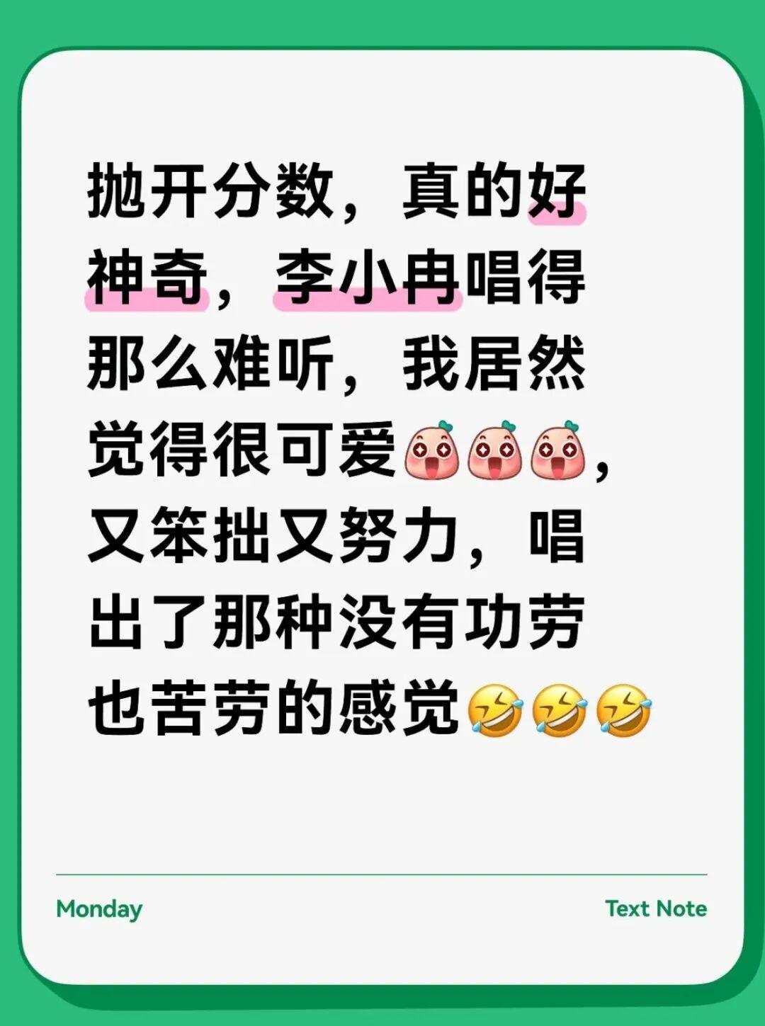 進步外,李小冉的態度一直蠻端正的,高壓+唱歌小白Buff疊滿,沒有划水沒有擺爛,對舞臺的敬畏之心還是有的,