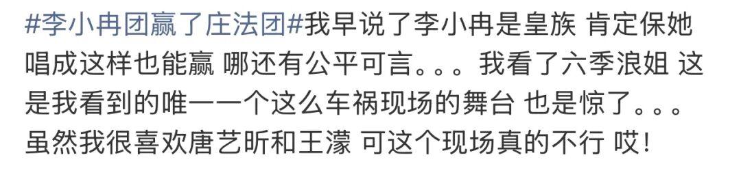 在年齡最小的李小冉這裏,大家希望看到的,是後輩對前輩的照顧,對「論資排輩」秩序感的順從,