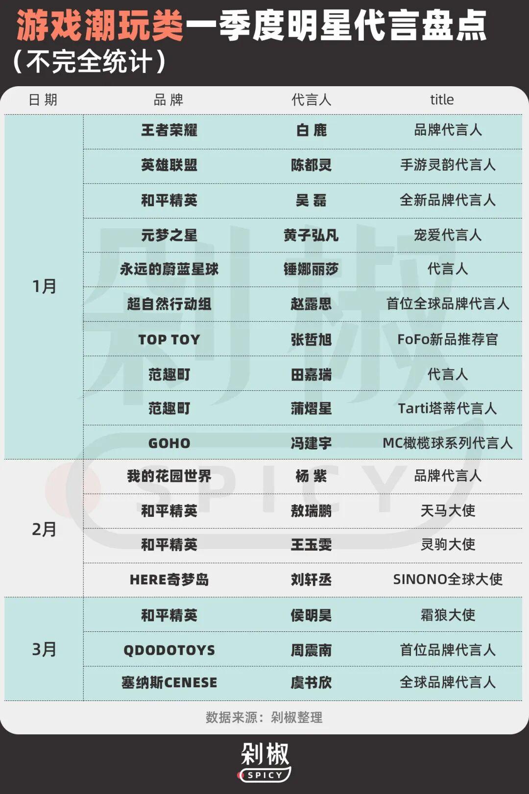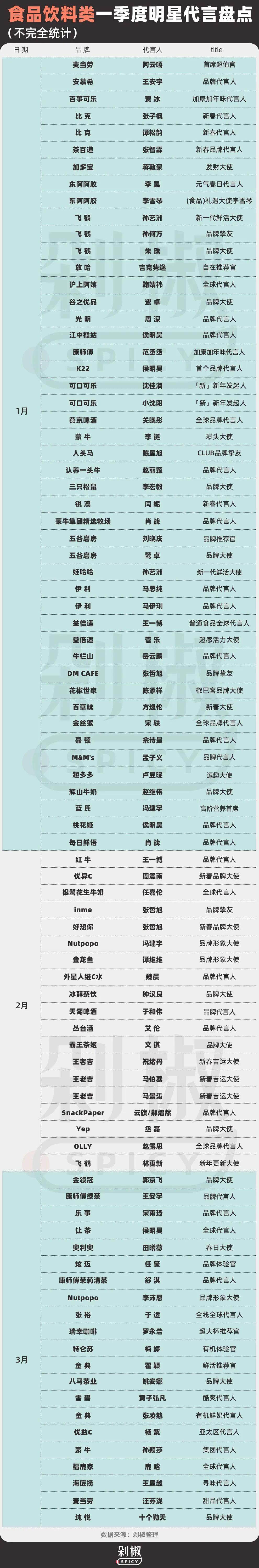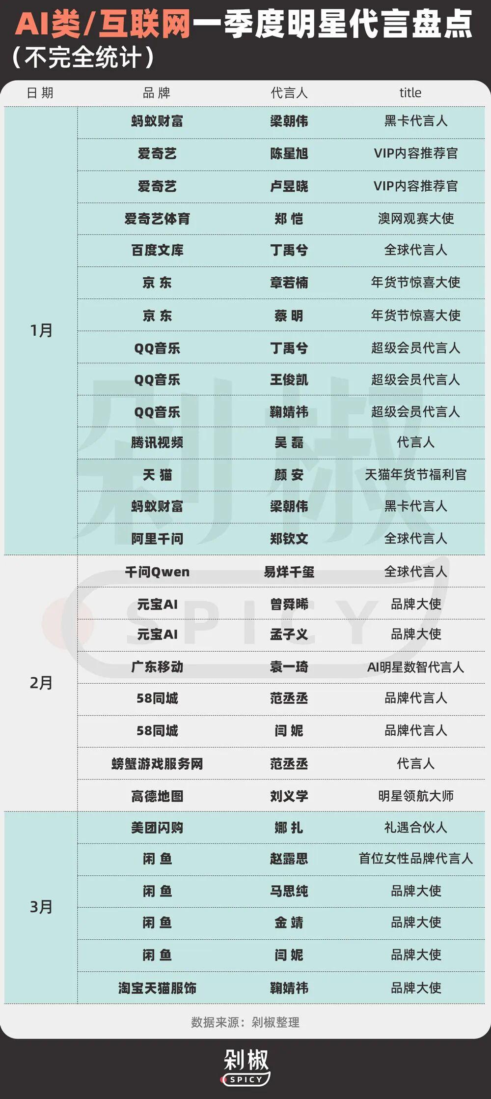 綜合來看,今年一季度的明星代言市場的可謂烈火烹油,本質上是一場高壓力下的賭博遊戲。品牌不再有耐心等待長期回報,每一分代言費都要看到轉化數據、話題效果。這樣的市場風向還會持續多久?剁椒Spicy也將對二季度市場持續關注。