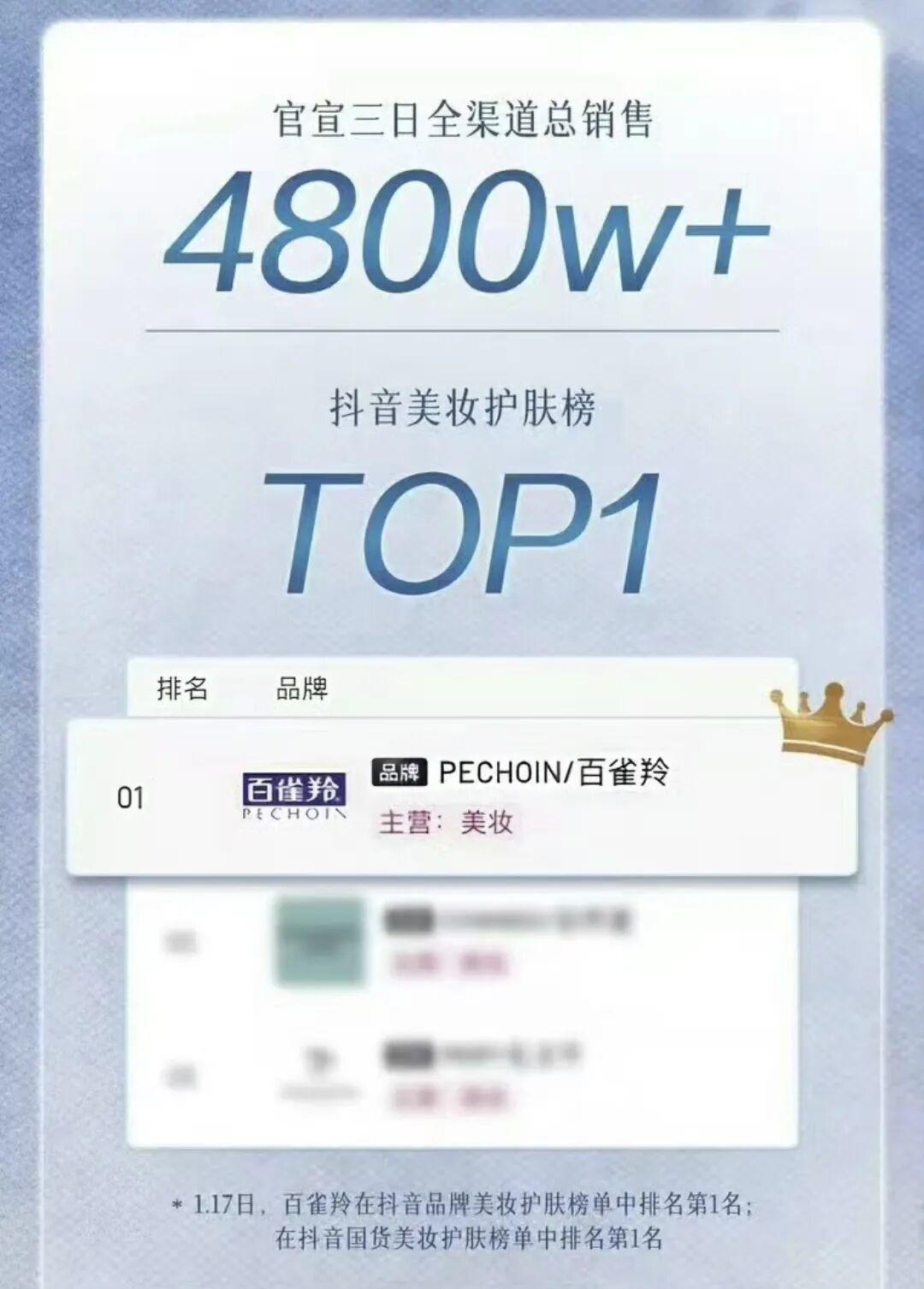 典型例如趙露思,2025年,她經歷了前公司違約風波和一系列負面消息,一度沉寂,但最終依靠《許我耀眼》的熱播逆勢迴歸。簽約新公司虎鯨文娛後,她在今年開年迎來商業價值爆發,成爲一季度代言數最多的女藝人。其中,1月官宣成爲百雀羚品牌代言人後,三天內品牌全渠道銷售額突破4800萬,其中主推產品百雀羚小瓷罐修護霜單品銷售超700萬。