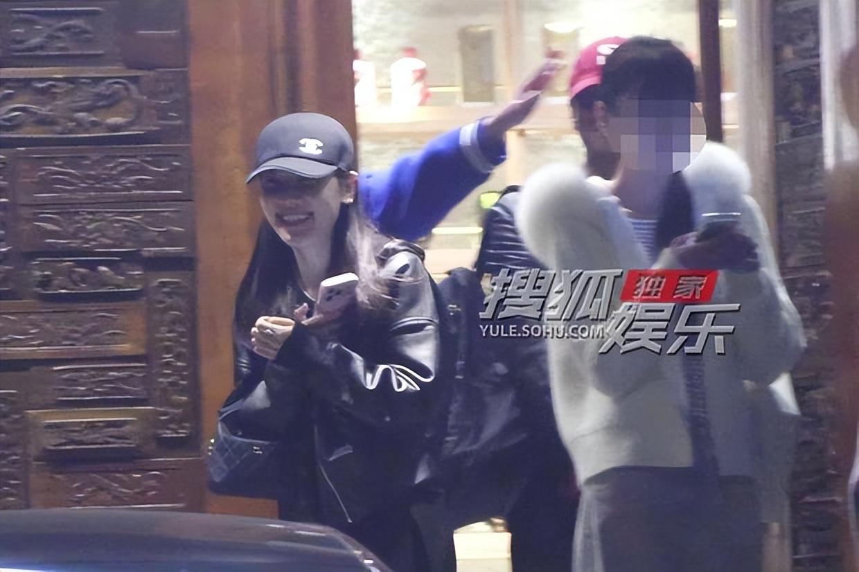 出門時,孫驍驍走在最前面,穿着黑色皮夾克拿着手機,笑得意猶未盡,快合不攏嘴了。