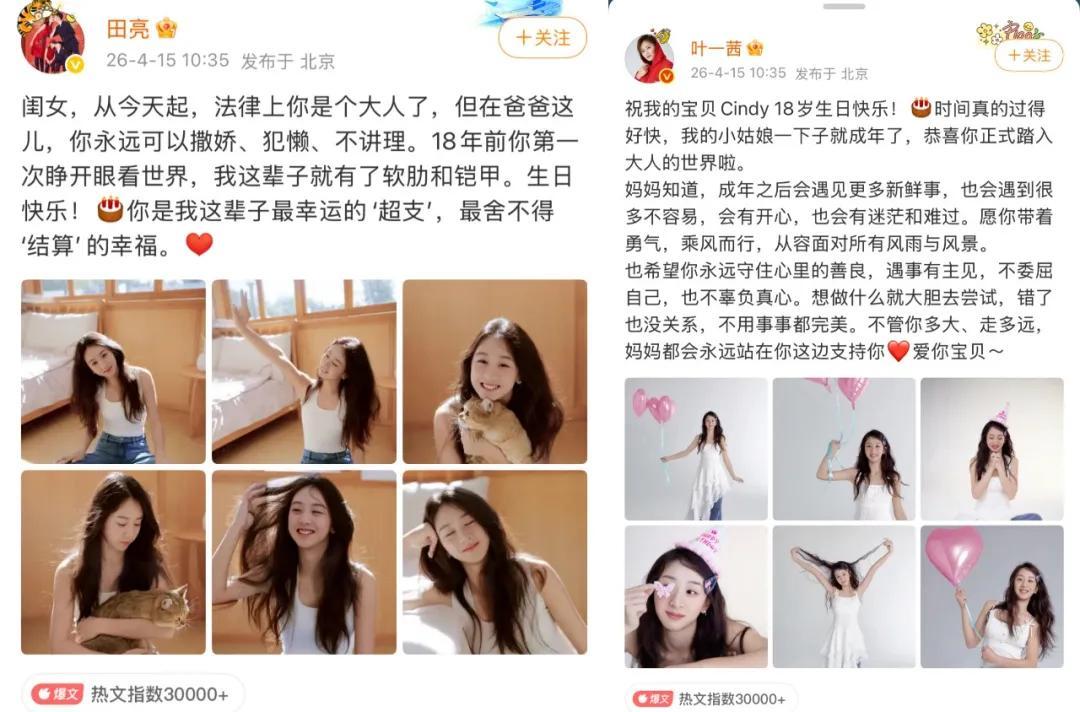 爸媽都發博祝福,言語間都是滿滿的愛意