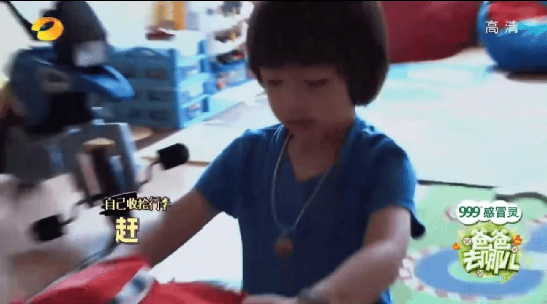 因爲爸爸工作很忙,所以會乖乖地自己收拾行李