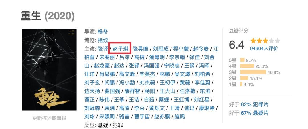 2020年電視劇《重生》,趙子琪是女一