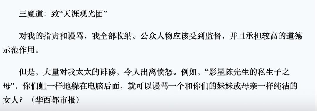 結婚的時候,他發了一篇名爲《人間、佛性與魔道》的公開信,把輿論的矛頭引到自己身上,