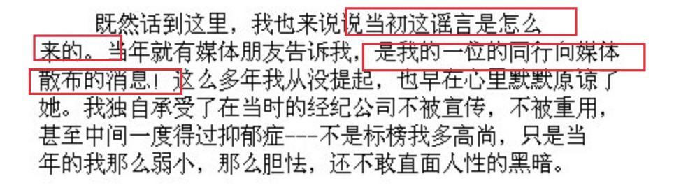 文中她還解釋,謠言是從一個同行那裏散播出來的,