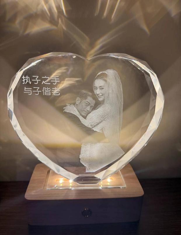 方媛曬出印有她和郭富城結婚照的水晶擺臺,超接地氣。