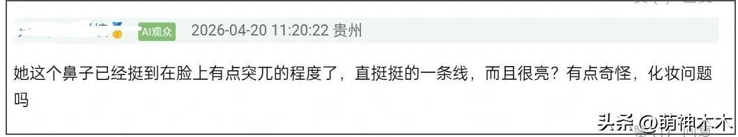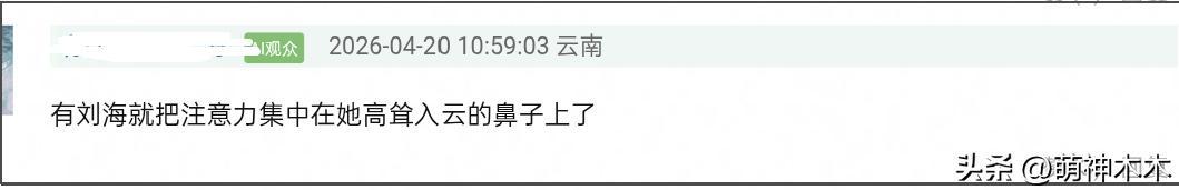 比較明顯的就是劉海髮型,不少網友表示這個髮型太糟糕,直接讓人把注意力放到鼻子上了,顯得畫風很突兀。熱巴的五官是精緻立體的,但在影片中格格不入,一來是直挺挺的鼻子在臉上看起來不夠和諧,二來是眼皮凹陷有點嚴重,搭配齊劉海髮型違和感極強,既有點“扮嫩”嫌疑,又看起來有點“男相”。
