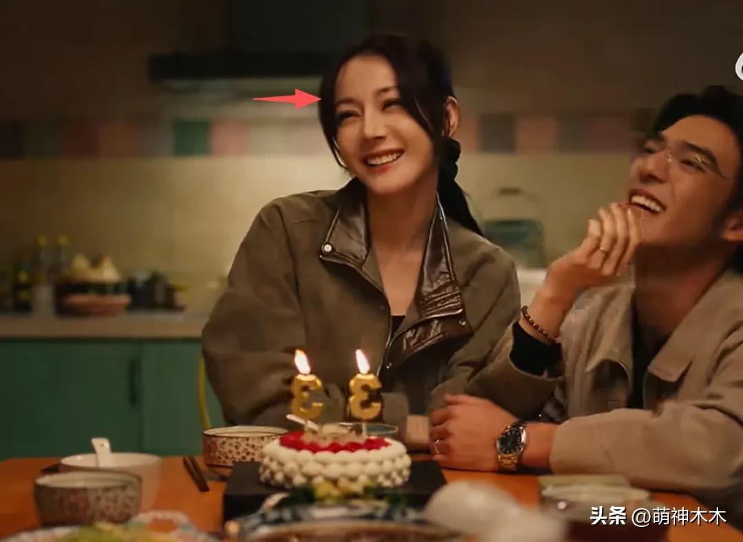 需要吐槽的還有濾鏡不統一,片方爲了保持真實性選擇性地使用了磨皮濾鏡。在一個俯拍熱巴打電話的鏡頭中,可以明顯看出磨皮程度跟其他鏡頭不一樣,這一幕面部肌膚平滑到像“遊戲建模”,皮膚沒有任何紋理,但也從而顯得妝面濃,能看到熱巴戴了較長的假睫毛和美瞳。當然,瞪大雙眼的震驚演技也是沒有進步。
