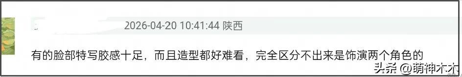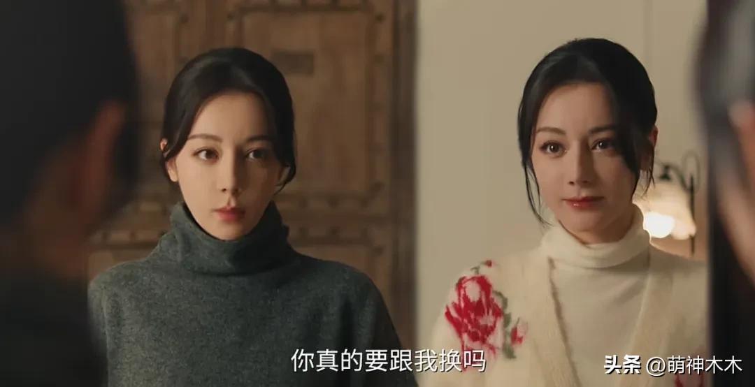 從預告片中的同框造型來看,熱巴兩個角色的服裝及妝發基本雷同,沒有明顯的差異性,頭髮都紮了起來,服裝也都是看不出經濟差距。而在表演隔空對話中,兩個角色的身份也沒有凸顯出來,演技都很呆愣,臉上寫滿空洞,自己與自己的對手戲沒有演繹好。