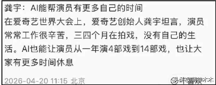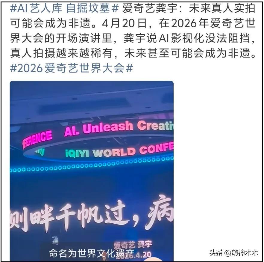 作爲頭部播放平臺的CEO,他談起ai影視化,表示未來真人實拍劇有可能成爲非遺,大談真人演員拍戲有多麼辛苦。