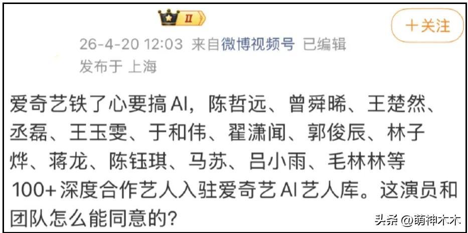 像陳哲遠、丞磊、曾舜晞、翟瀟聞等人,屬於二三線演員——暫時還沒有當紅頂流授權ai呢。