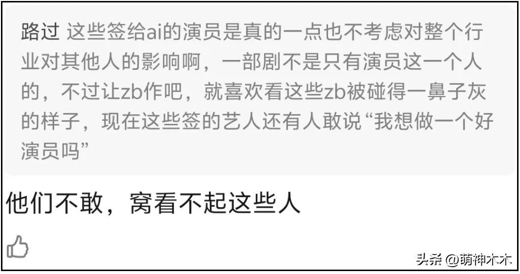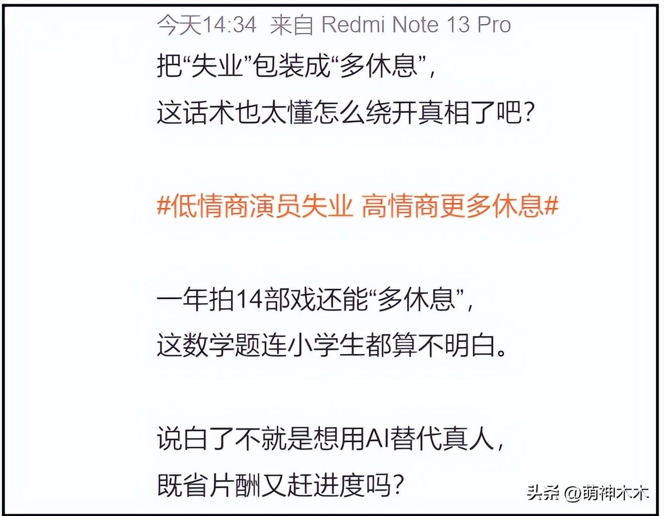 另外,不得不提的是,不少網友都開始抵制ai演員了,相關話題討論度越來越高,已然形成風波,還有了升級趨勢。