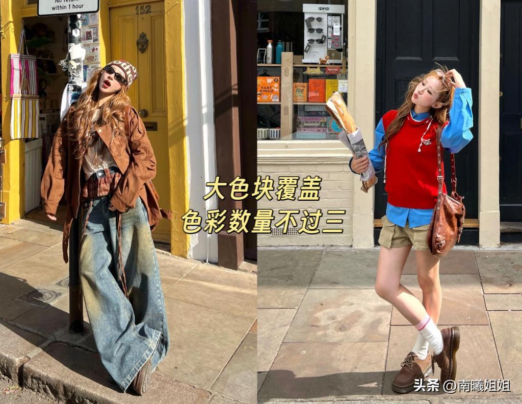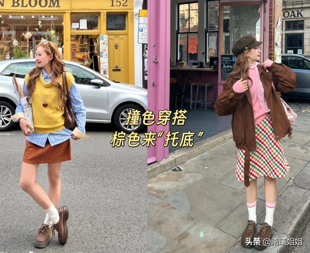顏色太過雜亂,就很容易出現豔俗感,尤其是彩色系的碰撞,只需要用棕色過渡即可,不用再加入其他的色彩;或者可以大面積的覆蓋棕色,再通過基礎色豐富造型,減少出錯率。