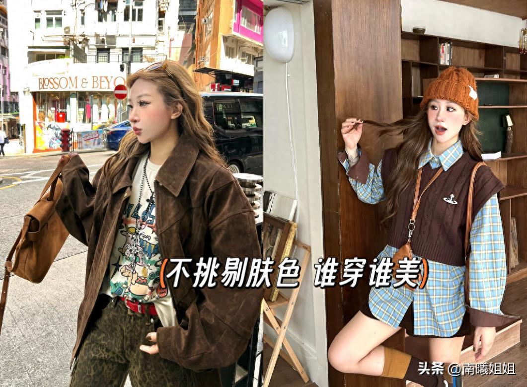 棕色可以承包一整個秋天的高級感,在低調鬆弛的基調當中,暗藏着一絲奢華力量感,充滿着復古摩登的氣息,穿在身上氛圍感拉滿,可以用於各種單品當中,解鎖“百變公式”。