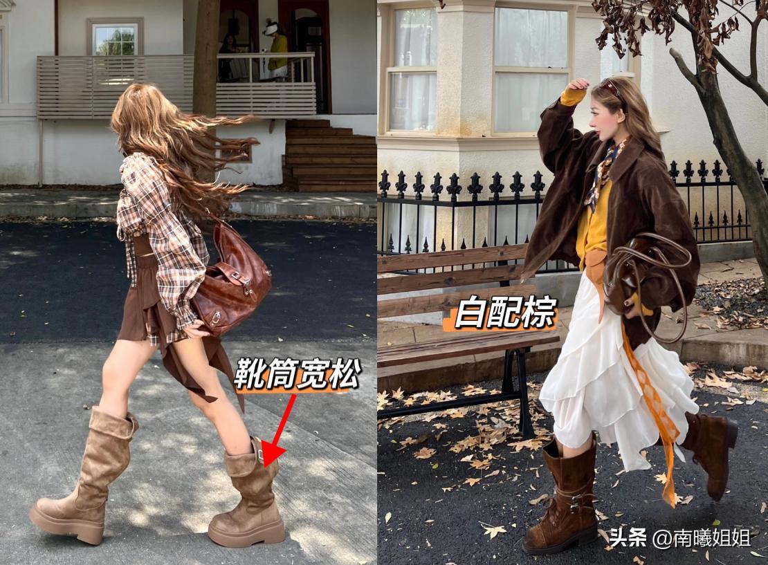 小白裙很適合搭配棕色外套,內搭亮色打底增加層次感,同時,白色也能達到很好的過渡效果,讓造型看上去更豐富,再踩雙和外套同色的高筒靴,溫度和風度並存。