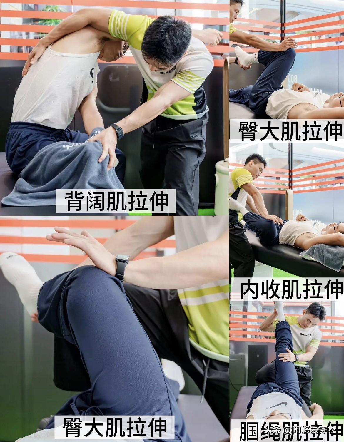 而且拉伸一定要做到位,大家每次運動之後可以參考下面的拉伸指南,背闊肌、臀大肌、內收肌等等部位都得拉伸。