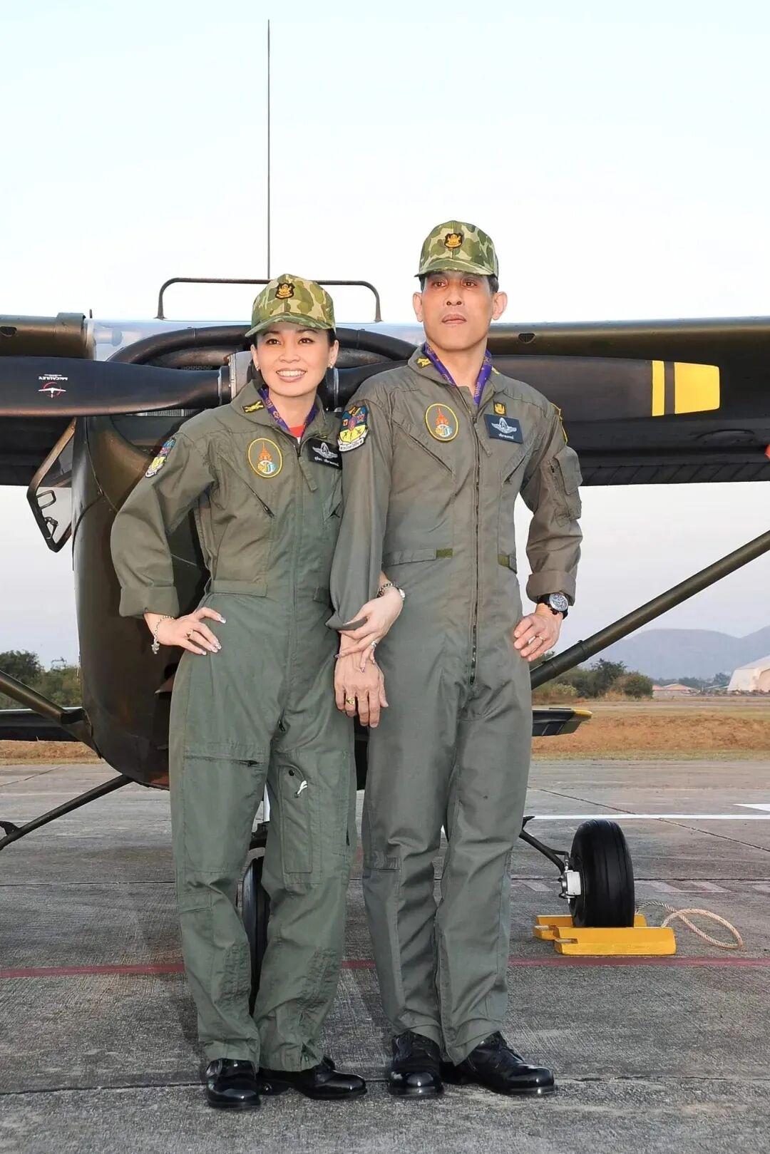 泰王年輕時就酷愛飛行,而蘇提達剛好是空姐出身,在軍隊時又學會了駕駛技術。倆人早年就一起上天入地,還站在飛機前拍情侶照↓